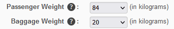 Scroll down to find the entries for Passenger Weight and Baggage Weight.