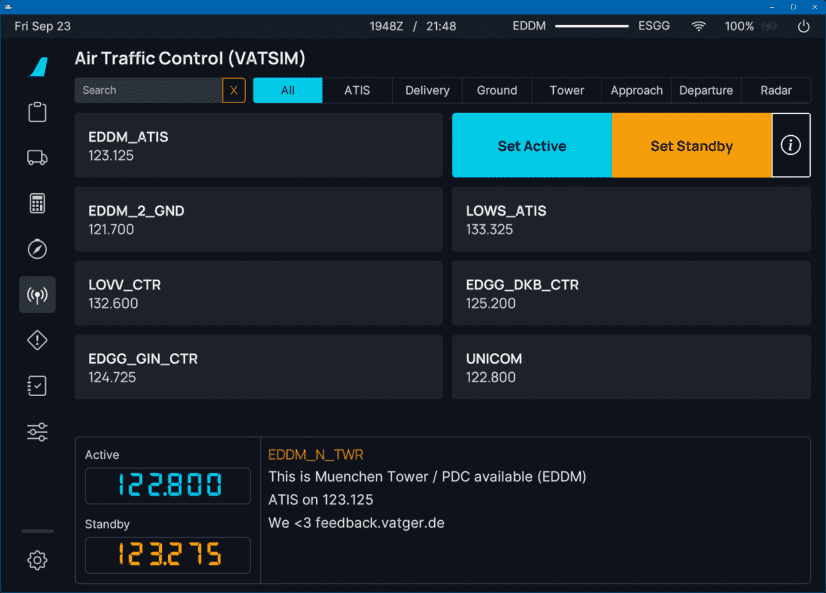 It lists all currently available ATC stations, which can then be activated in the RMP 1 by a single click.