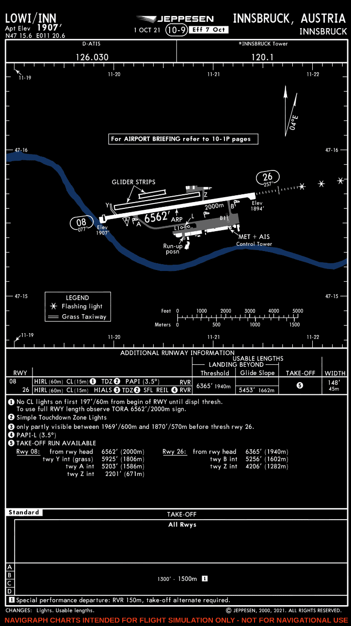For a large airport like EGLL, there is not enough space to add the additional runway information on the 10-9 chart. In this case, TORA distance for each runway and for intersection takeoffs is provided on the 10-9A chart. For a Runway 09L full-length takeoff, the TORA is 12,799 feet, or 3901 meters.