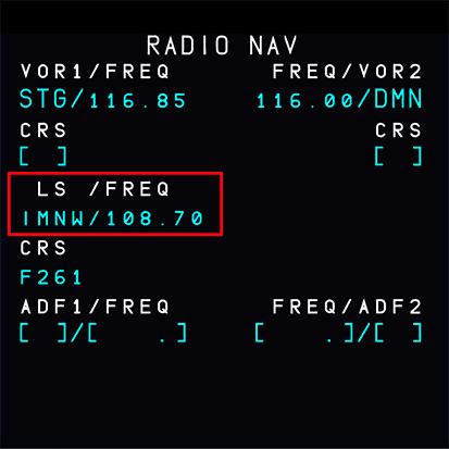 MCDU-RNAVpage. We find the correct frequency on the approach chart. -