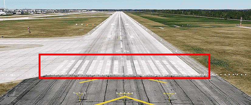 We aim for the middle of the touchdown zone, which is marked by the touchdown zone markers.