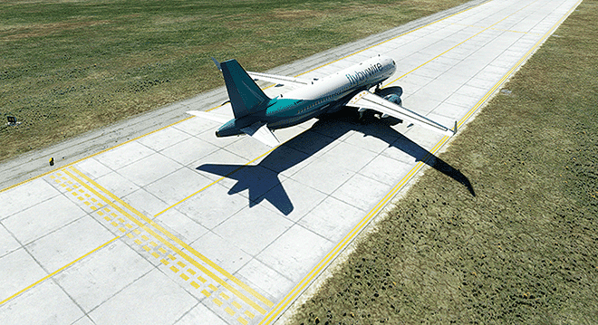 We hold the attitude of the aircraft until it settles on the ground. Do not push the sidestick forward (nose down) once flared. We let the aircraft settle to the runway while holding the pitch.