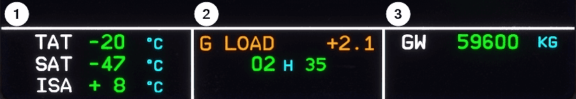 | 2 | Permanent Data Middle | G LOAD | G LOAD in amber when g load > 1.4g or < 0.7g for more than 2 s. Inhibited in some flight phases. |