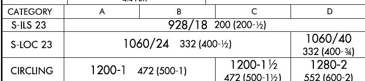 Now, depending on the aircraft you are flying, depends on the minimums you are allowed to use. These are grouped together by the approach speed of your aircraft, while in normal landing configuration at the maximum landing weight that it is certified to do.