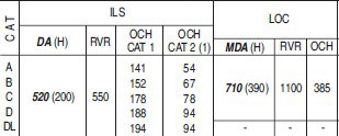 As this chart is now designed differently, it has described the MDA as a DA for the ILS. Now this is just a difference between charts and countries, some use one terminology over the other. Also, to note is the inclusion of OCH values. These are the obstacle clearance heights of all possible objects on the approach path, so if you descend below this, then there is a possibility of a collision. These OCH values are not used by the pilots in an approach but are used by the professional bodies who design the approaches as to what the minimums values should be.
